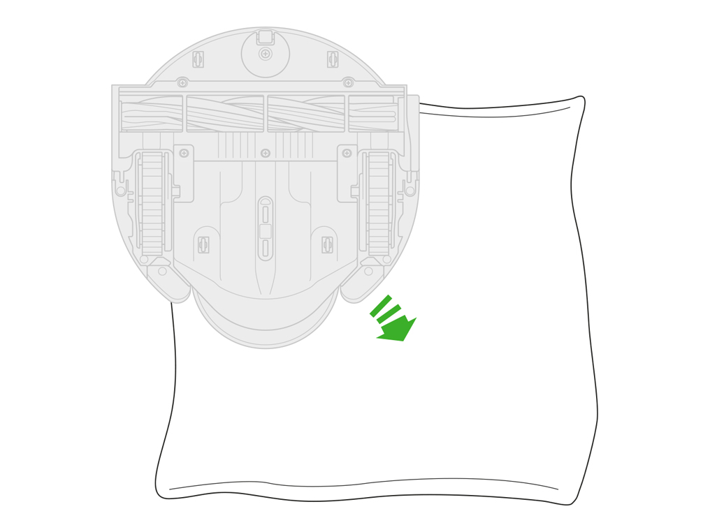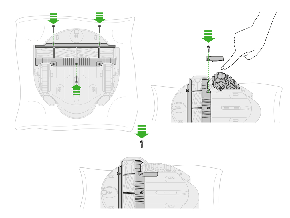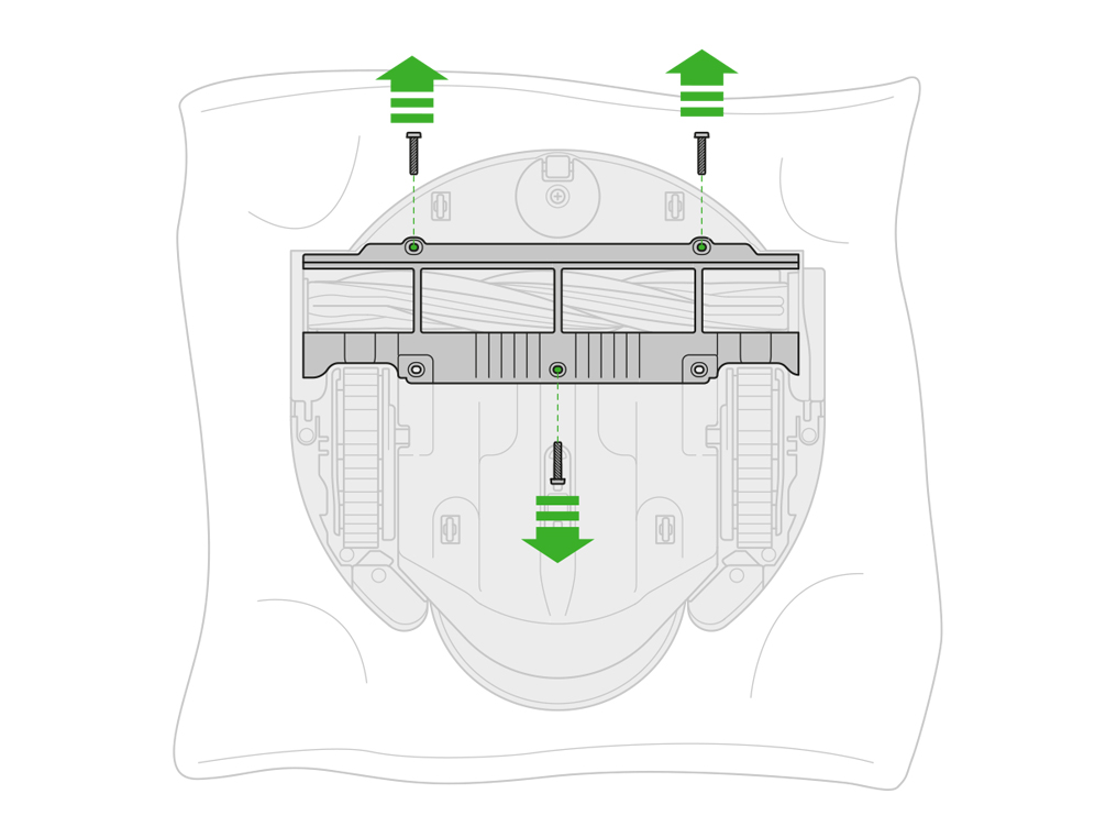 Pulling firmly in the middle of the soleplate front edge will release the retaining features from the base of the robot.