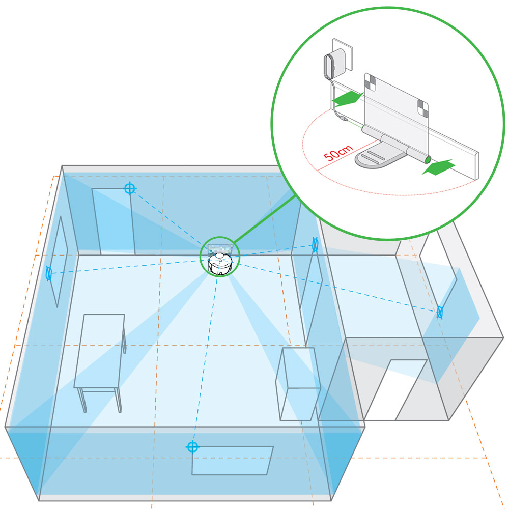 它将在每个分区内绕开障碍物进行清洁,直至覆盖所有地板,然后返回底座。