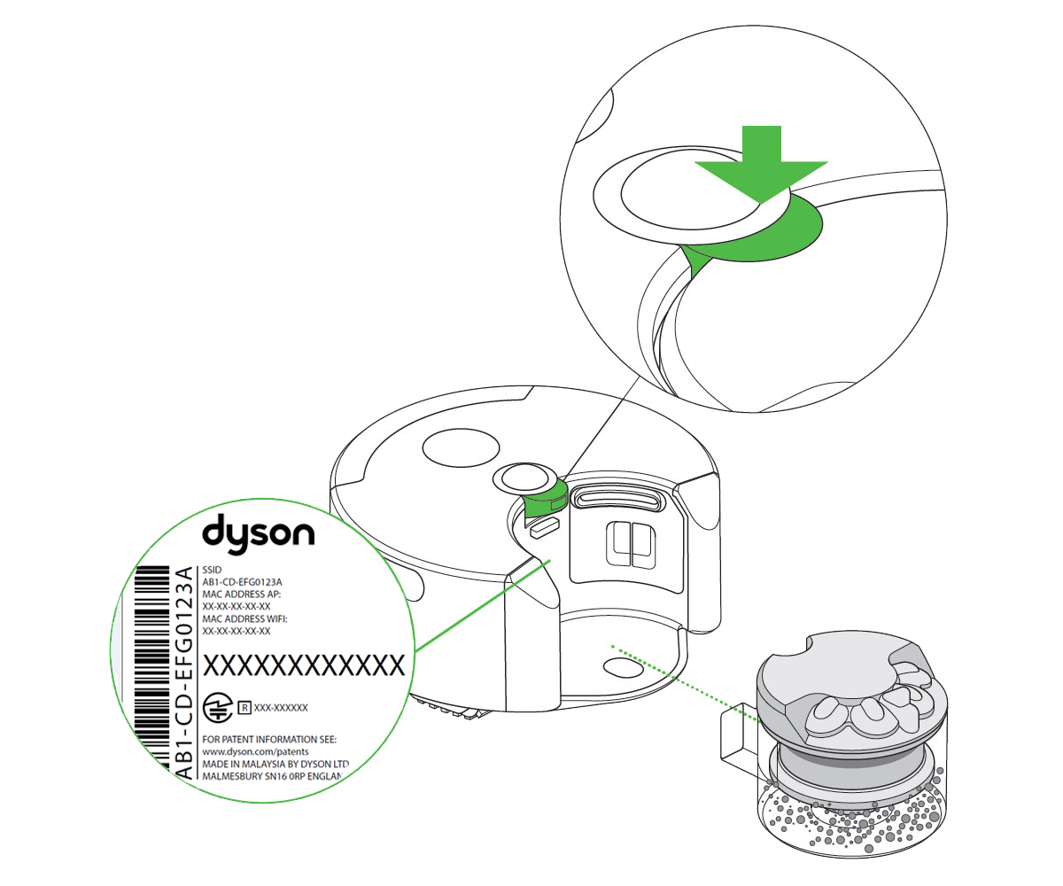 序列号和密码位于说明书的背面及集尘筒后面的机器主体上。