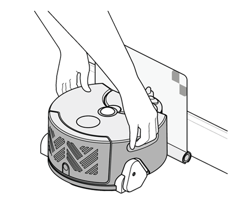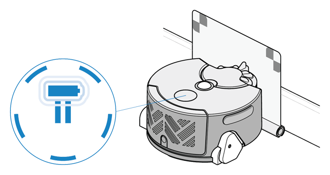 把吸尘机器人放到底座上。请确认底座已通电,且吸尘机器人正在充电。