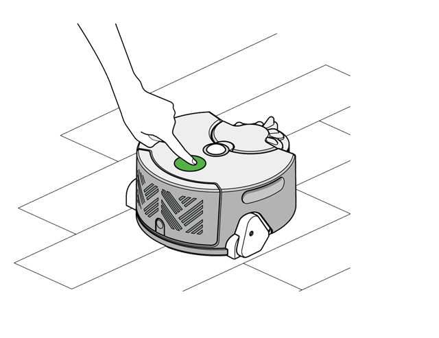 按下电源按钮,吸尘机器人将开始清扫可通行区域,但不会自动返回充电。