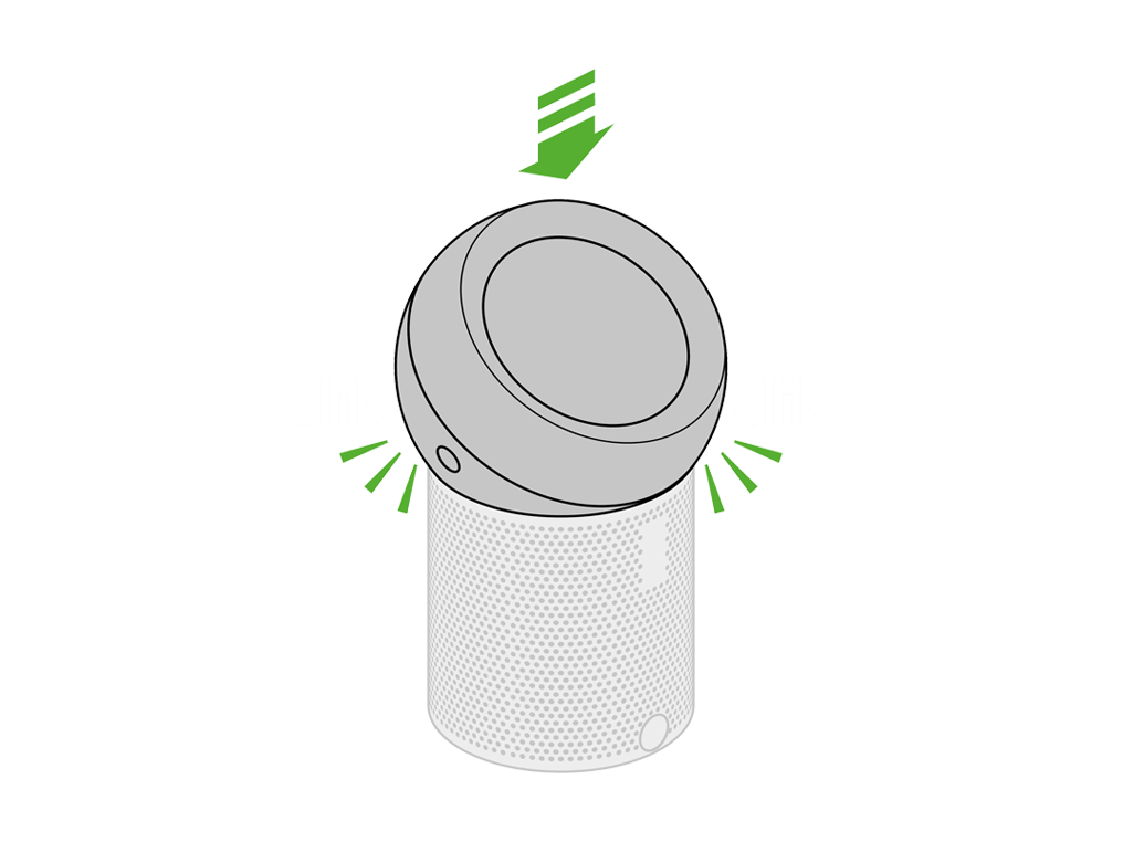 用力推动球体以重新安装,确保其卡入到位并与主机上的戴森标识对齐。