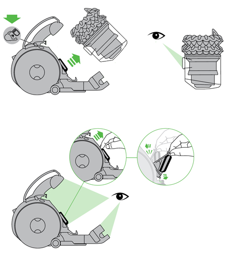 • 移除集尘桶及气旋组件。