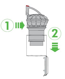 1. 打开集尘桶底座,按下银色按钮将集尘桶与气旋分离。