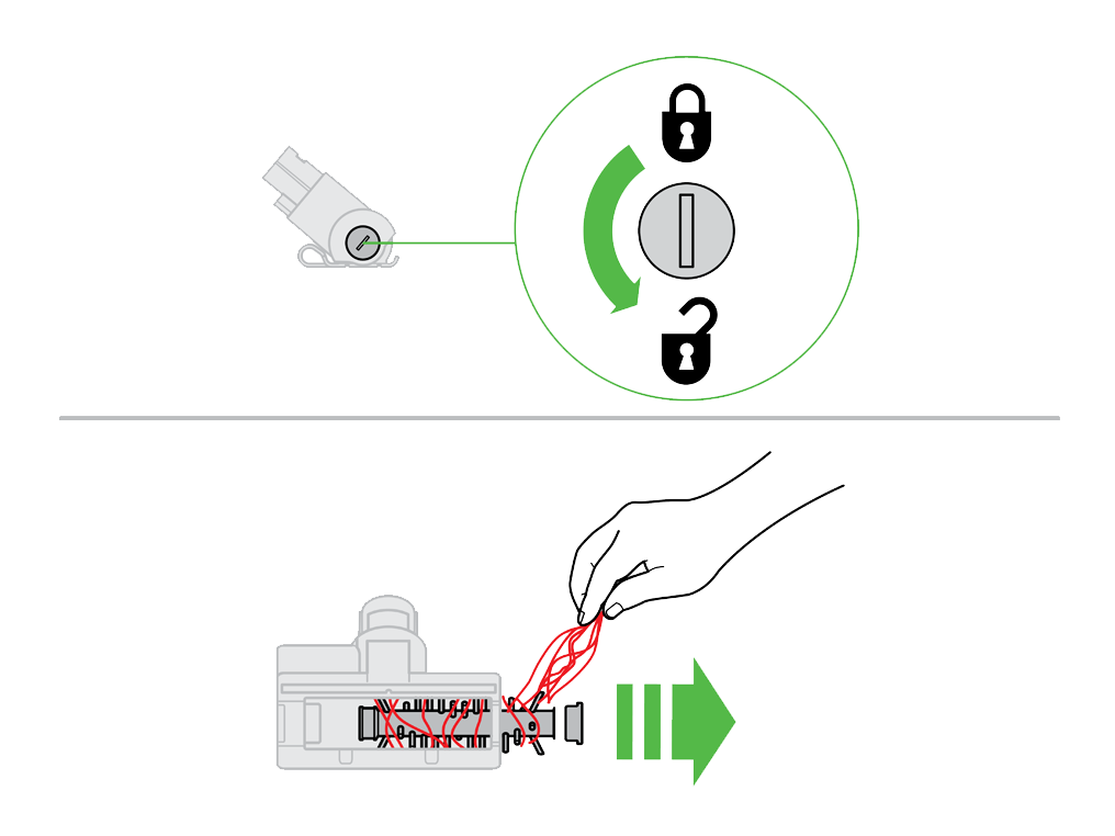 • 检查异物时注意是否有尖利的物体。如果无法清除堵塞,建议拆除刷条。