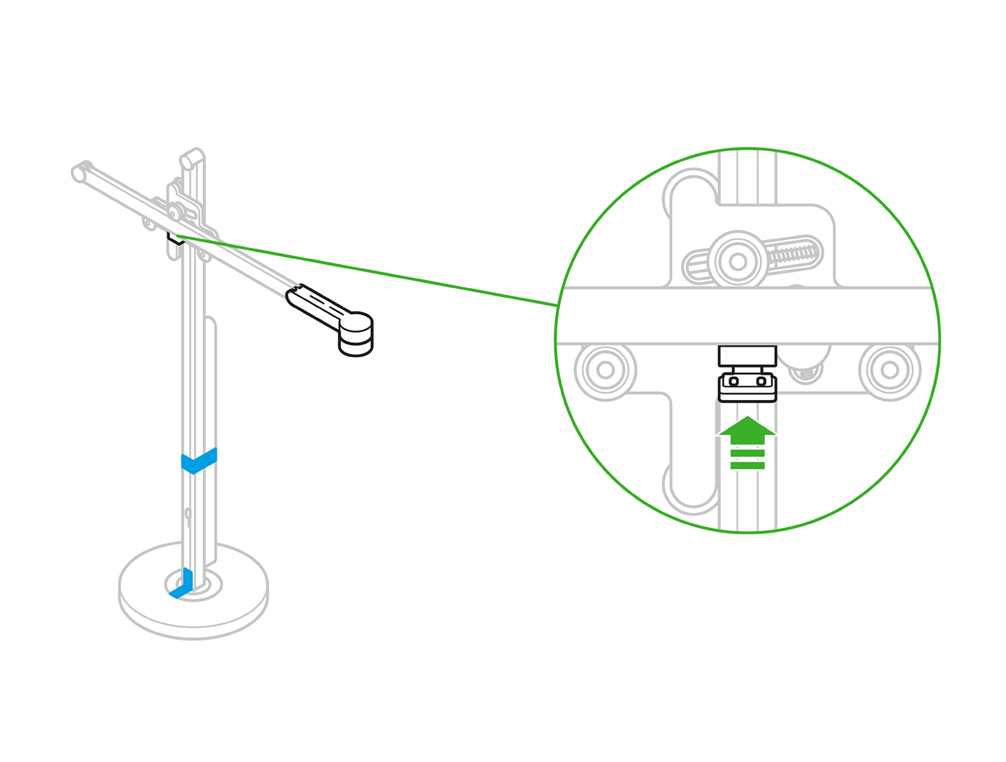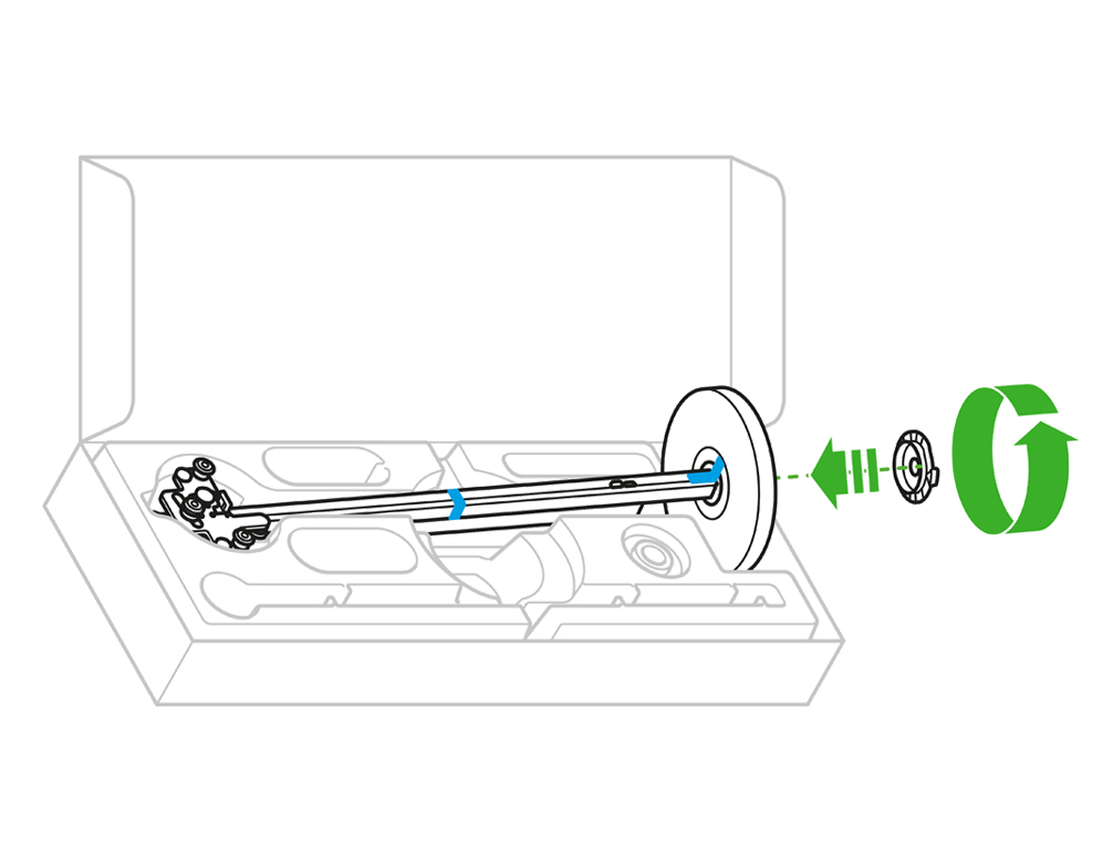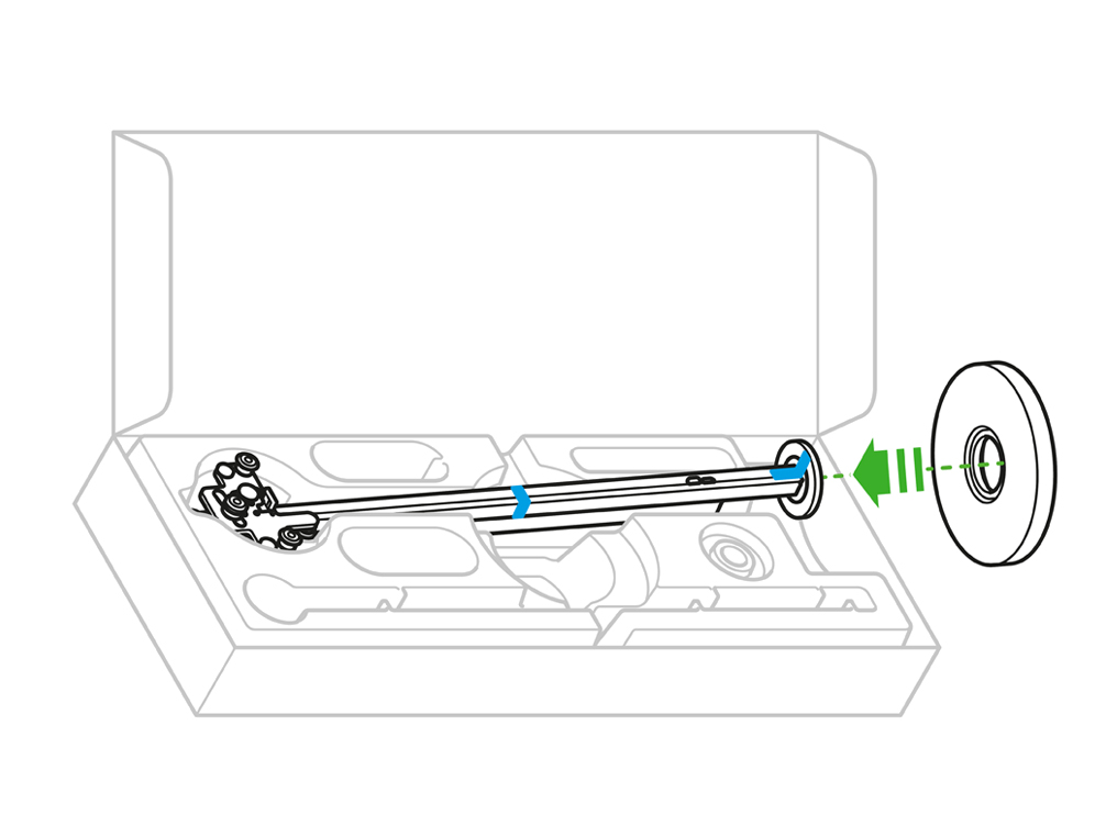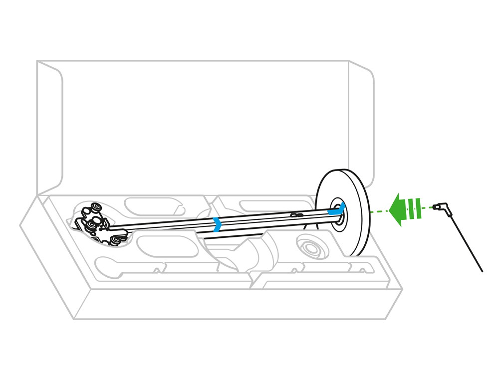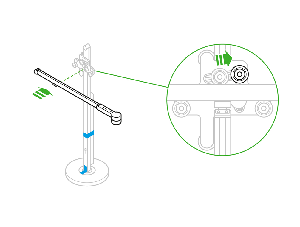 滑动滚轮轴承并插入水平臂,确保磁性连接器位于两个滚子轴承之间。