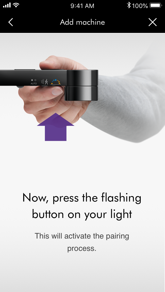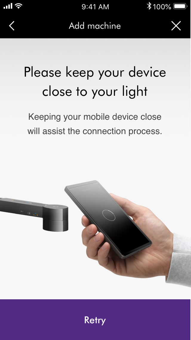 为使连接顺利进行,请保持设备靠近照明灯。