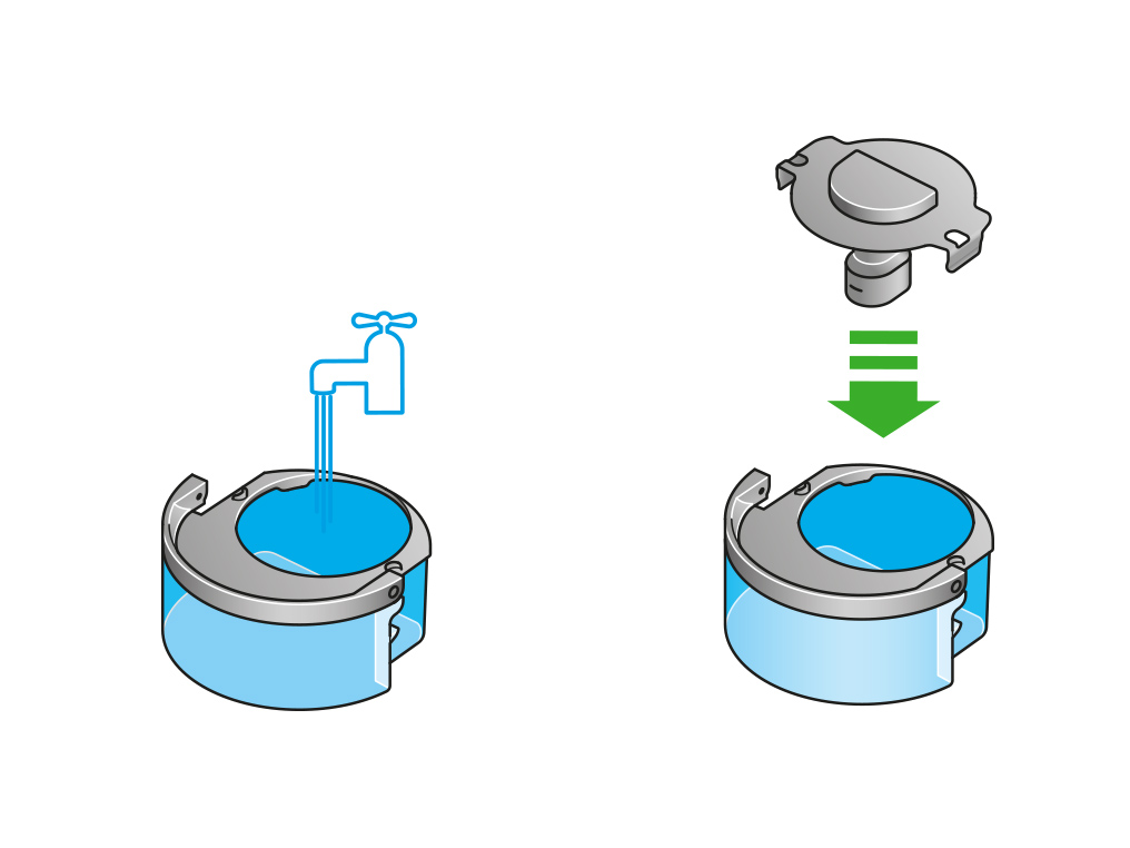 取下盖子和蒸发器。往水箱里添加冷水至Max。