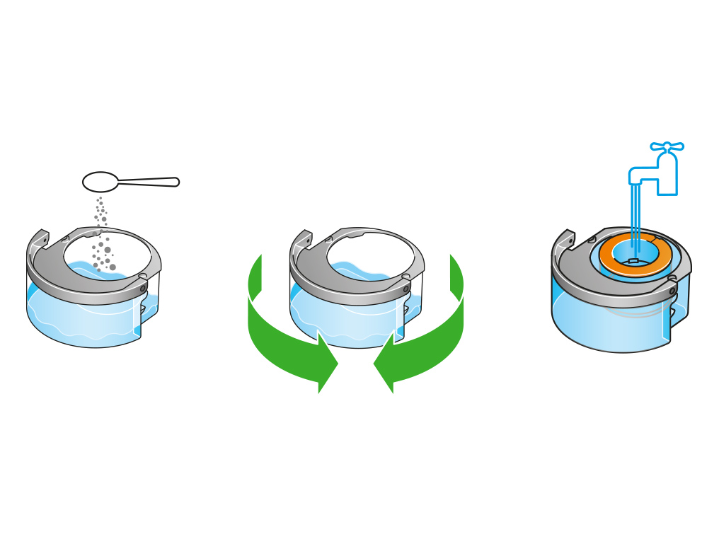 在水龙头下清洗水箱。擦干水箱内部,去除多余溶液和碎屑等。