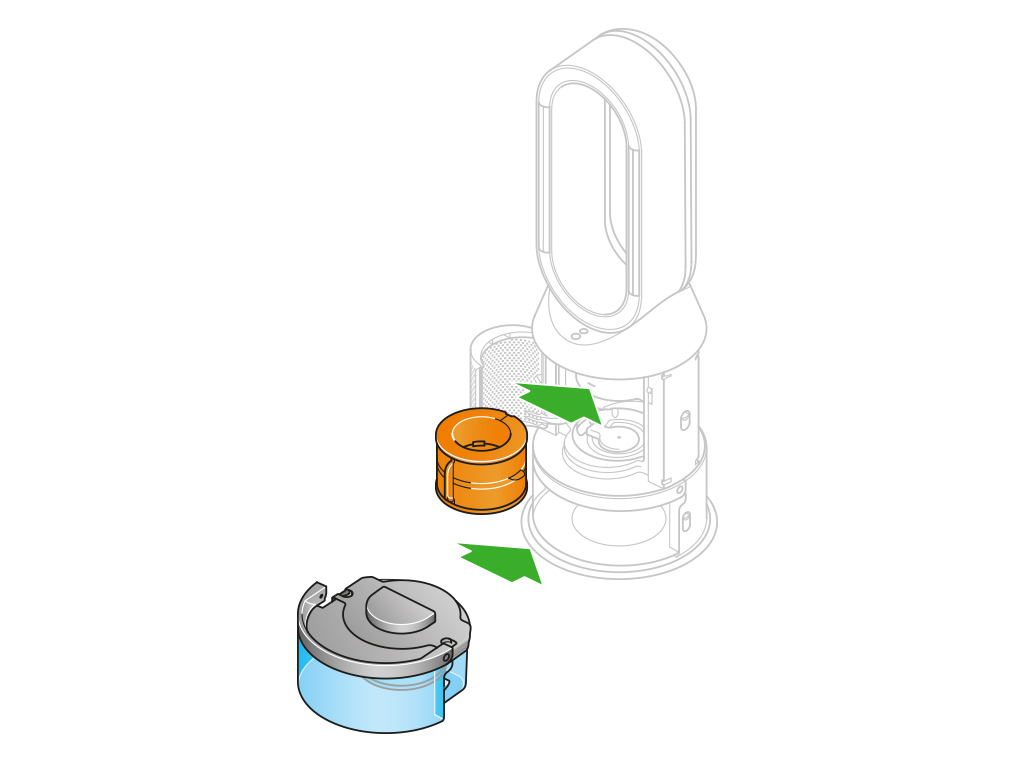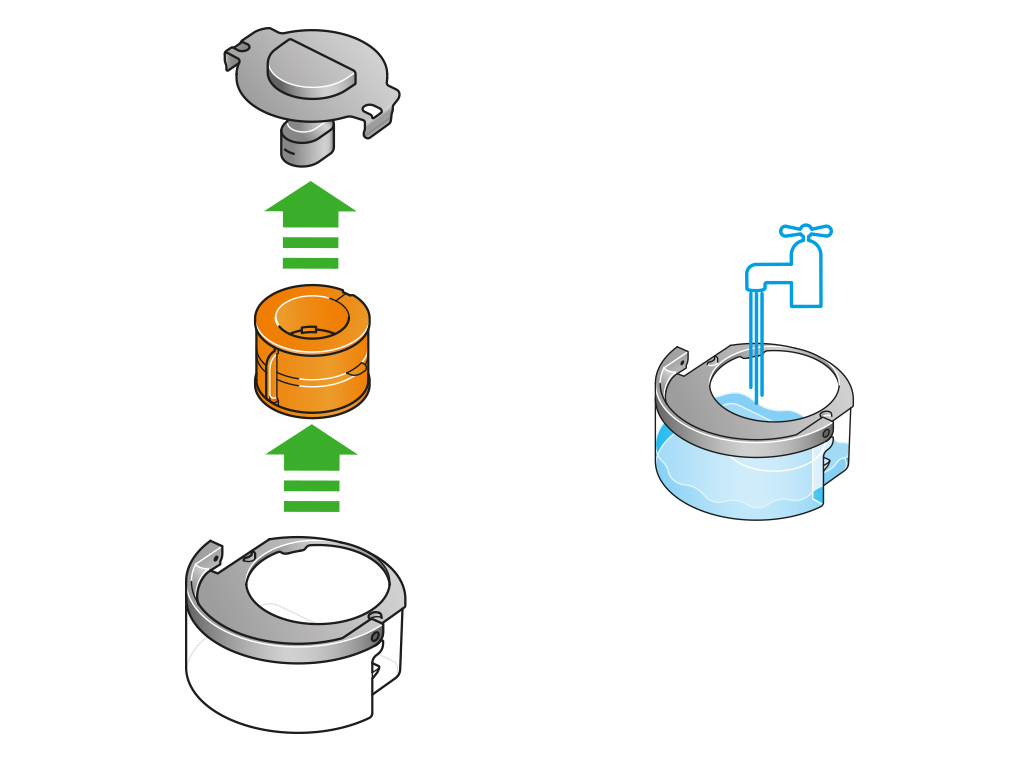 将蒸发器从机身取下,置于水龙头下,重新装好盖子。