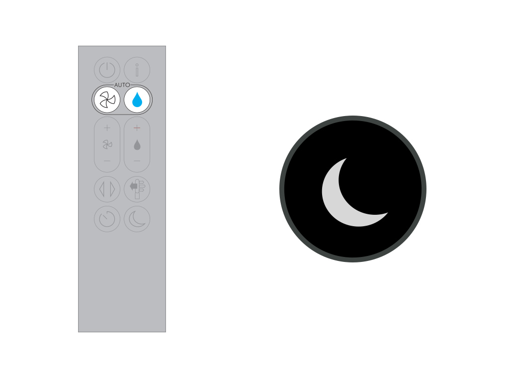 夜间模式下,加湿空气净化风扇将开启持续监测,并且根据室内空气质量和温度实时自动做出调整。机器也会使用最安静的出风模式,同时LCD显示灯将调至最暗。