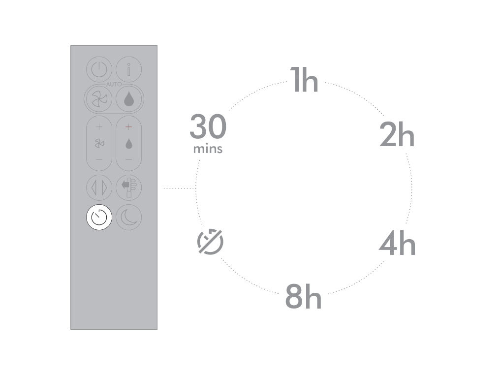 戴森加湿空气净化风扇在设定时段过后将会自动关闭。请点击遥控器上的相应按键,设置定时时段。一旦激活,用户可以点击睡眠定时按钮查看设置时段。如需取消睡眠定时,请点击相应按键切换,选择取消。