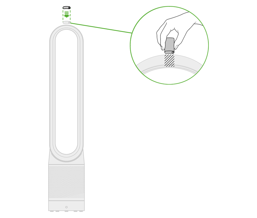 遥控器可放置在机器风环顶部,按钮面朝下