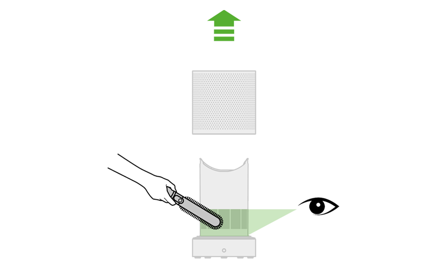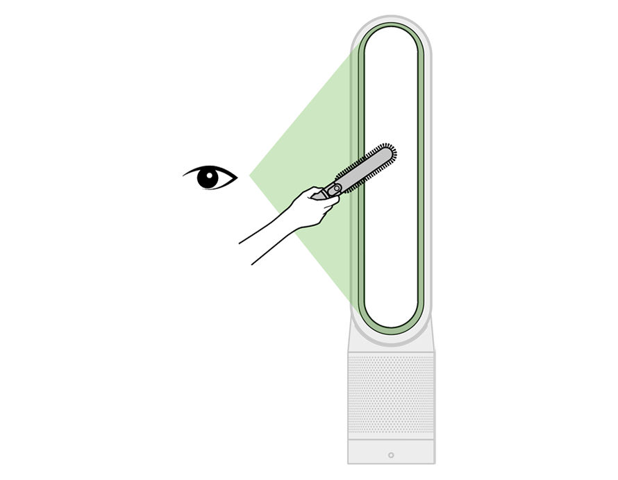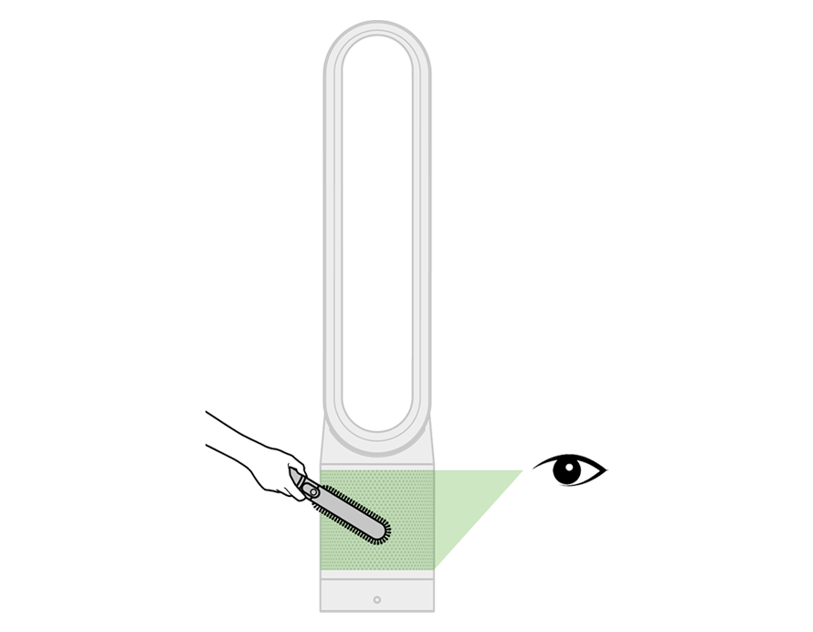 查找滤网上入气孔内的堵塞物。使用软毛刷清除碎屑。