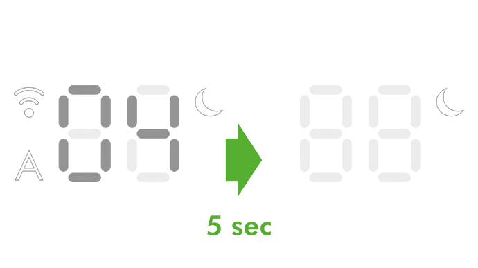 夜间模式启用时(由显示屏右上角亮起的半月符号指示),显示屏将变暗,5 秒后将逐渐熄灭。半月符号保持亮起。