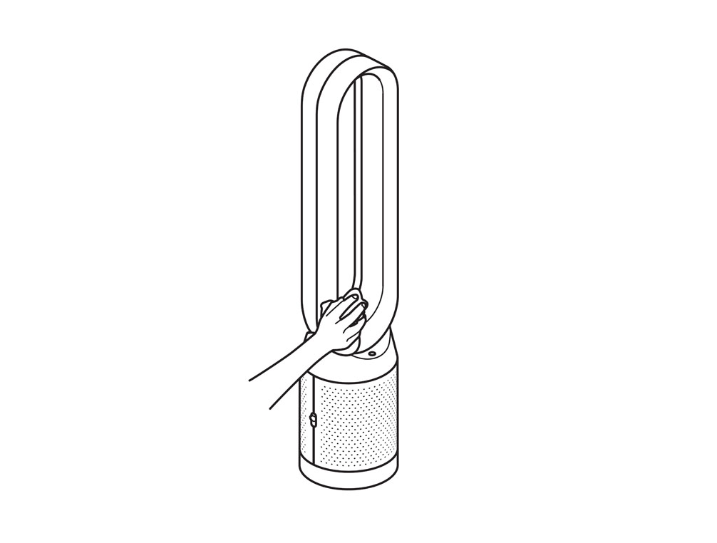 机器表面可能会积聚尘垢。用干布或湿布擦拭风环、滤网装置和其它部件上的尘垢。